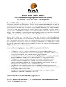 Women Watch Afrika Is Hiring A Part-Time Census and Redistricting Organizer.
