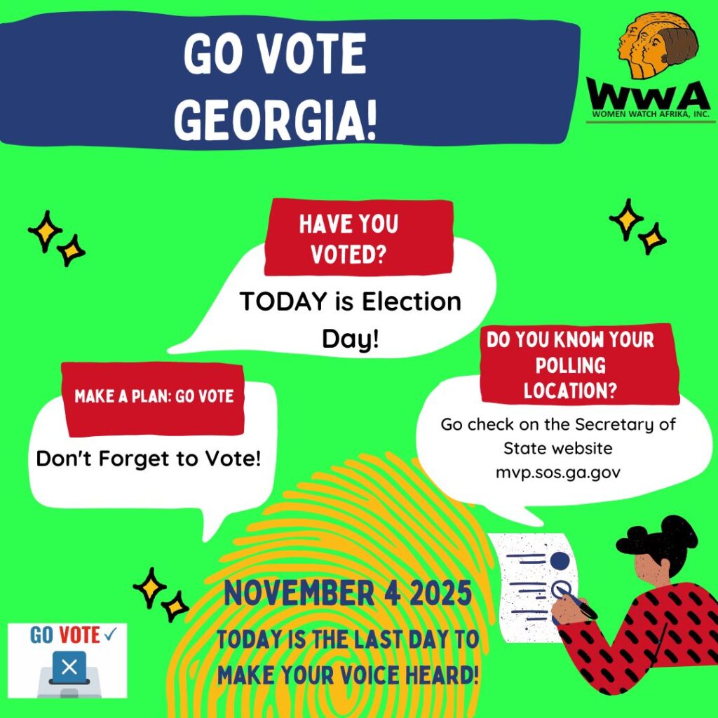 It’s Election Day: Have You VOTED?! Go Vote Georgia! TODAY is Election Day! Today is your LAST chance to make your Voice Heard in this election. #GoVoteGeorgia -Women Watch Afrika, Inc. — As an expert in this field, Women Watch Afrika provides trainings as a consultant on numerous […]